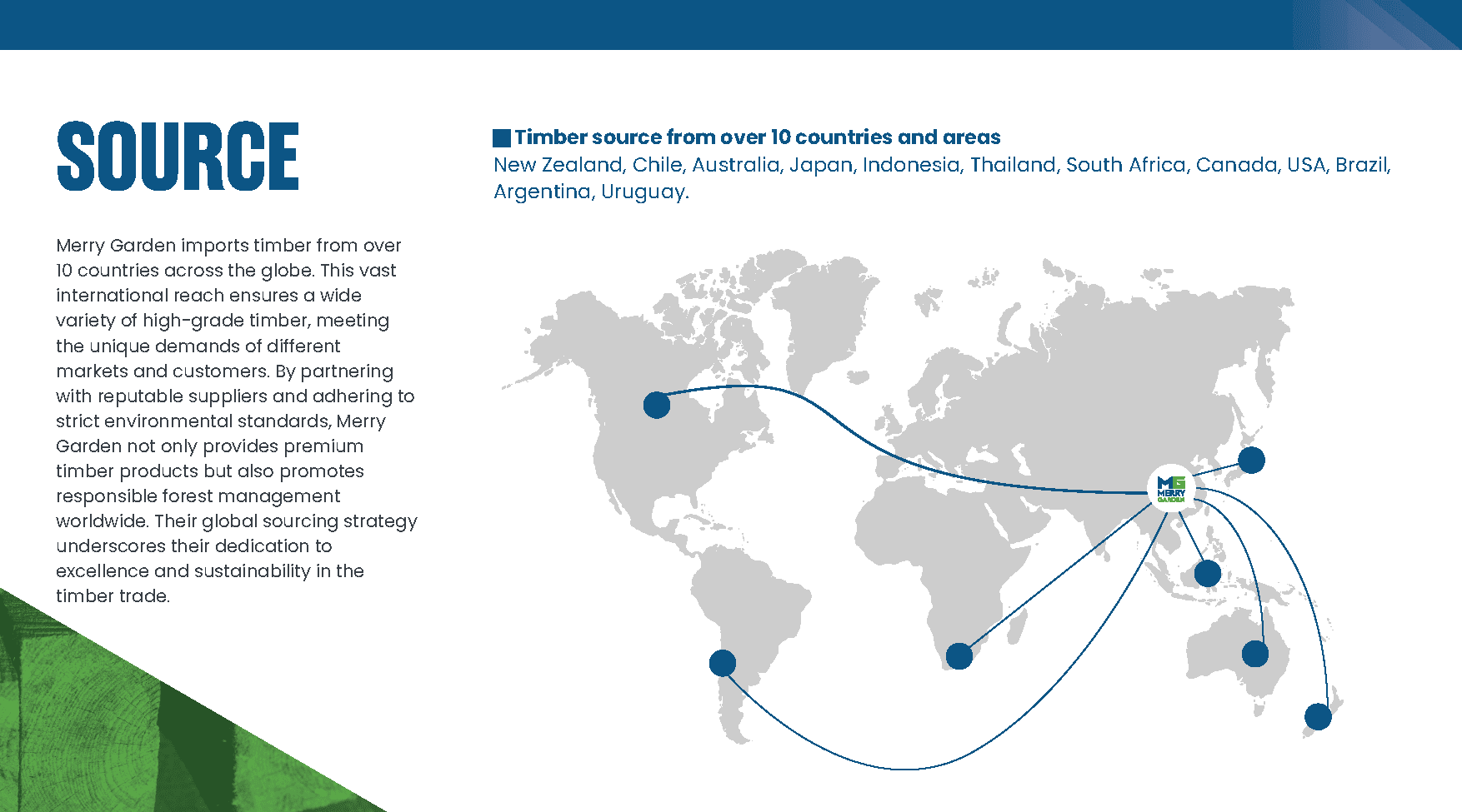 Merry Garden Holdings Limited, founded in 1995, is a wooden leisure products enterprise in the PRC that encompasses the design, production, and sales of leisure household products, timber villas, sheds, and related parts and structural products. architects specializing in creating individual and unique spaces. Our passion for nature and design inspires us to create beautiful, functional, and distinctive landscapes that bring joy to our clients. In support of sustainable development, Merry Garden sources only legally harvested species with logging certification from Chile, New Zealand and other countries around the world. All waste generated during the manufacturing process is recycled as bio-fuel to reduce the carbon footprint.